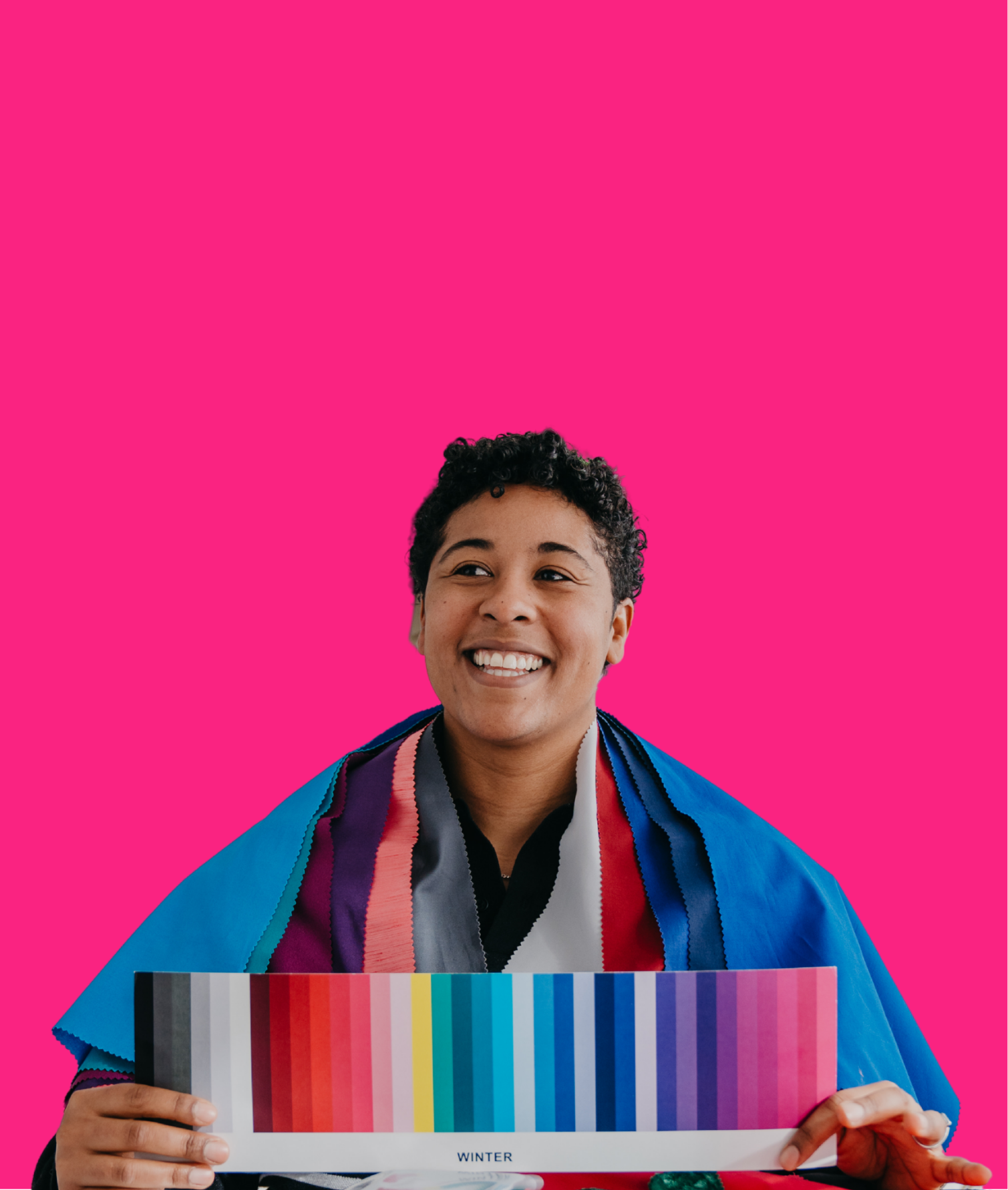 Maddie makes room for everyone in her color analysis practice. People of all ethnicities, gender expressions, ages, body sizes, and backgrounds are celebrated. As a queer person, Maddie cultivates a space for people to authentically show up as their whole selves.
