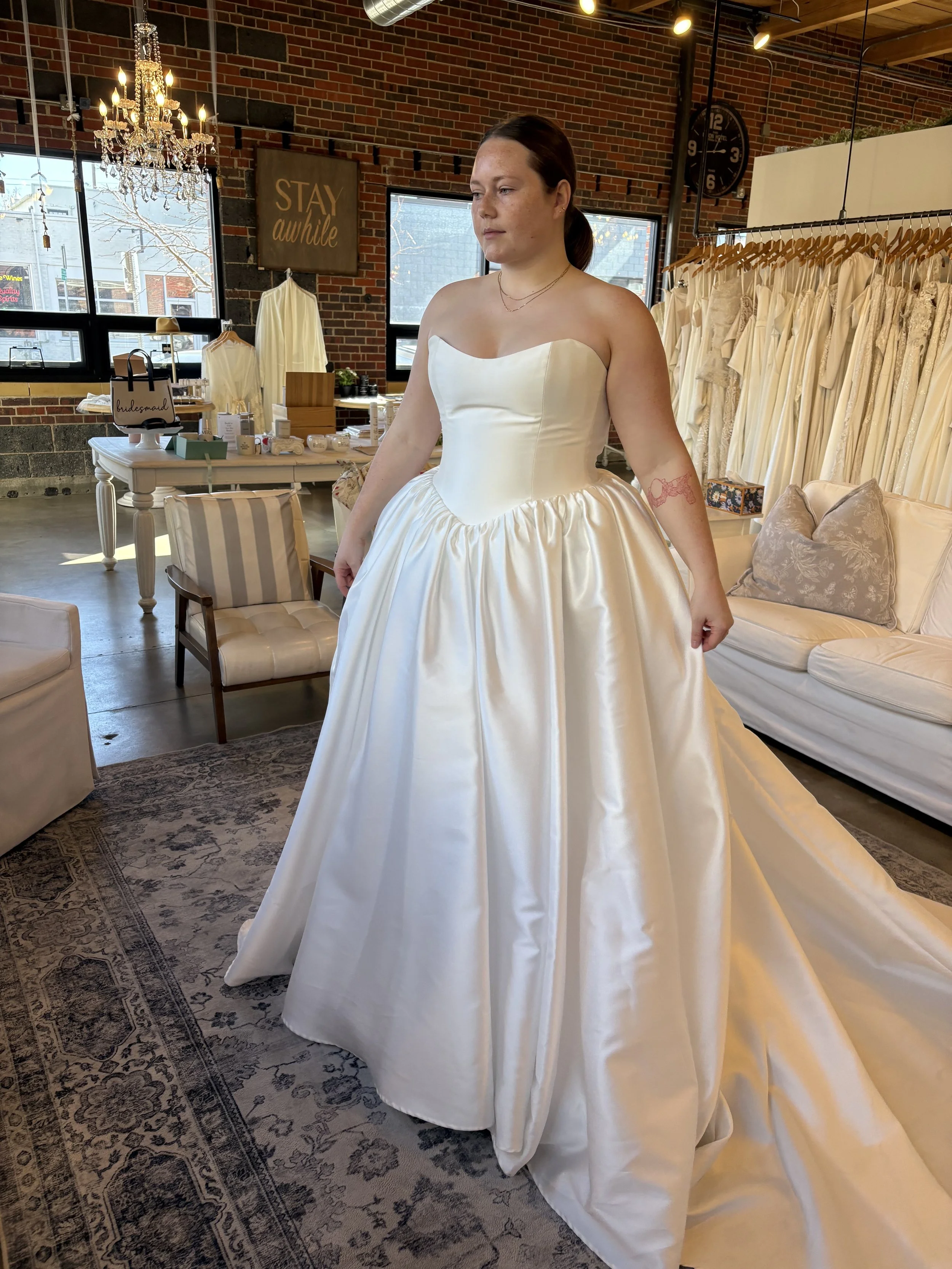 Something Blue offers group analysis to determine everyone’s best shade in a specific color, so you can still have cohesion while your bridal party glows — no bridal party resentment over here! Maybe they will actually want to wear this fit again.